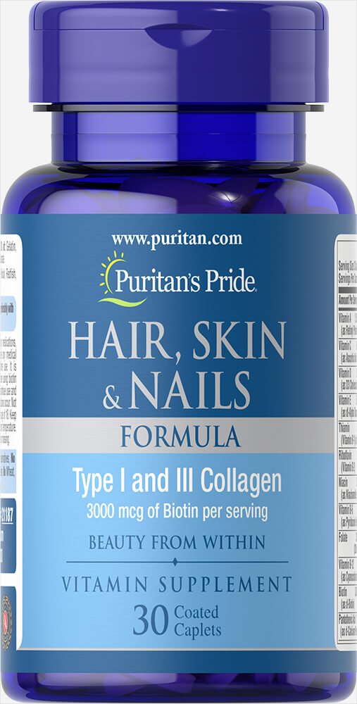 Puritan’s pride HAIR, SKIN & NAILS includes biotin, supporting fast hair growth, boosted immunity & better physique.