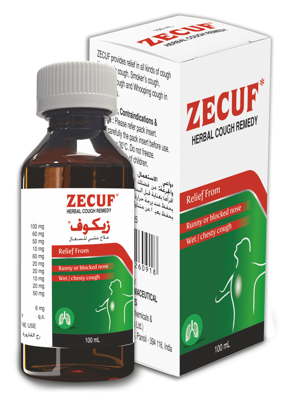 Zecuf Syrup 100ml is a herbal cough remedy. it is used for runny and blocked nose and also for wet and chesty cough.